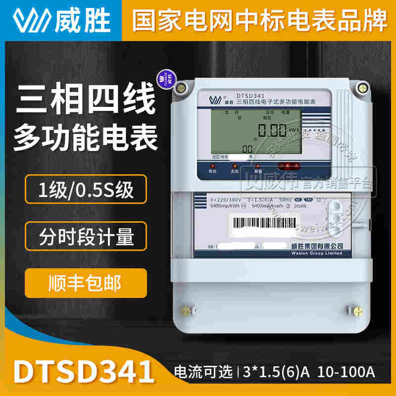 长沙威胜三相多功能电表DTSD341-MC3三相四线多功能智能电表0.5S级3×1.5(6)A