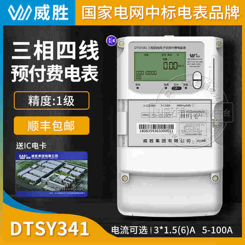 长沙威胜DTSY341-MD3三相四线ic卡远程预付费电表3*5(40)A精度1级3*220/380V电流规格和互感器配置
